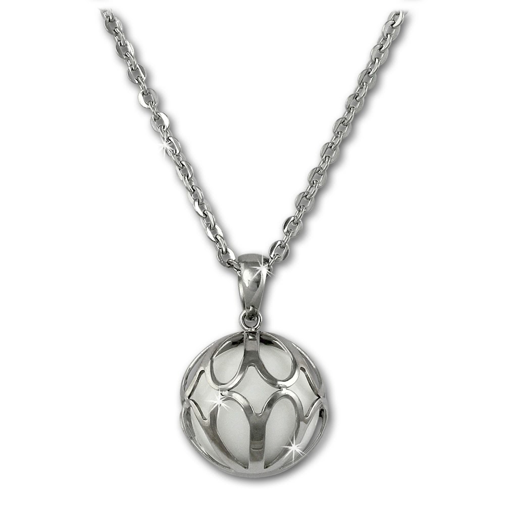 Amello Halskette 55cm Kugel Ornament Edelstahl glanz Schmuck silber weiß ESKY02W