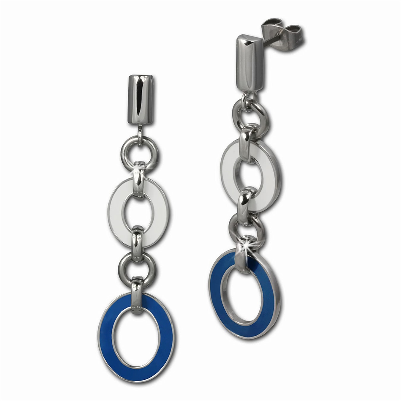 Artikelmerkmale: Amello Damen Ohrhänger stahlfarben jeans-blauer weißer Emaillelack