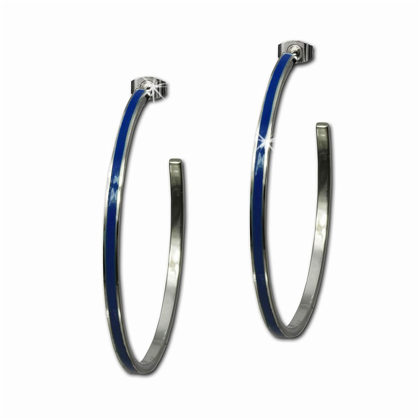 Amello Damen Ohrschmuck stahlfarben jeans-blauer Emaillelack ESOG02B