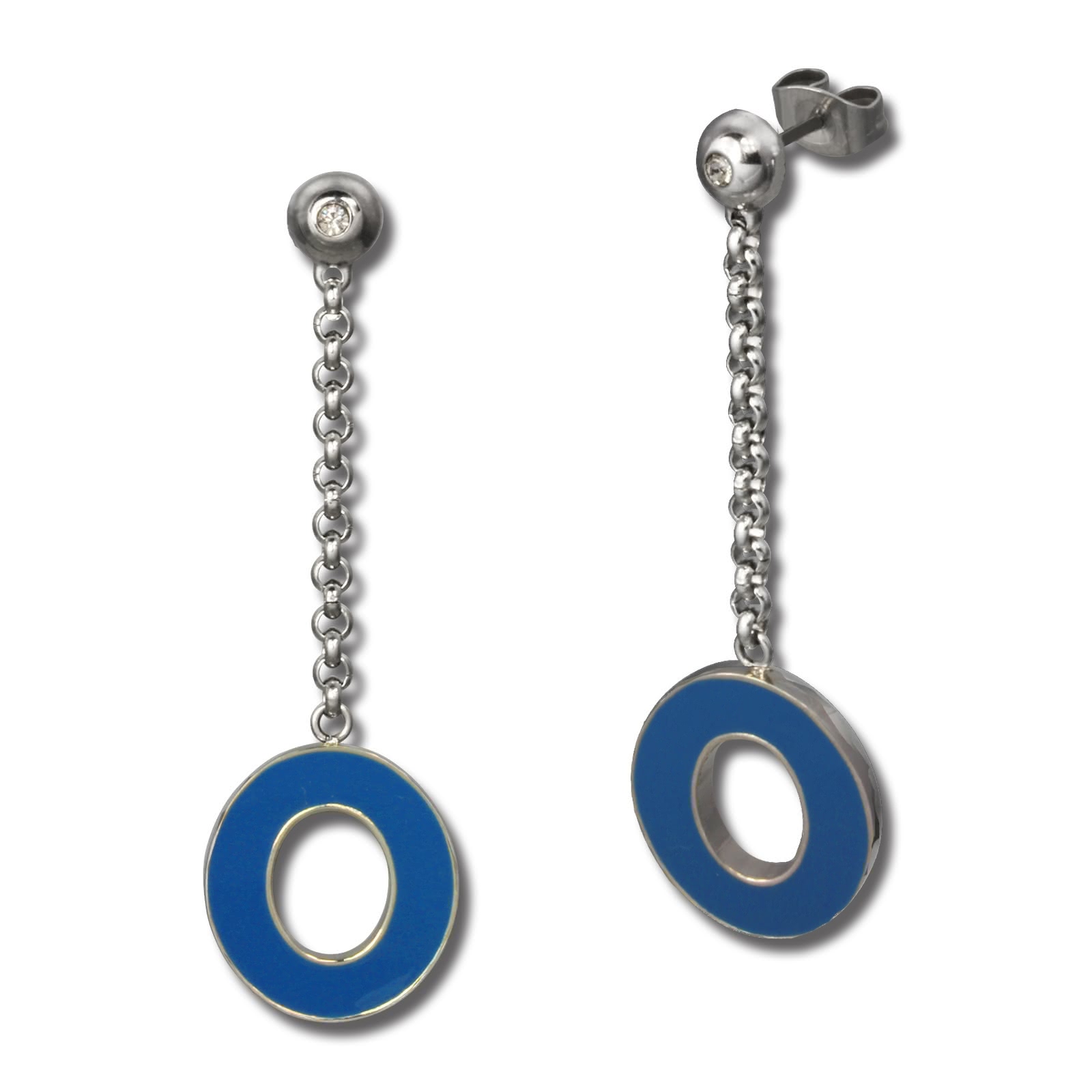 Artikelmerkmale: Amello Damen Ohrhänger stahlfarben jeans-blauer weißer Emaillelack