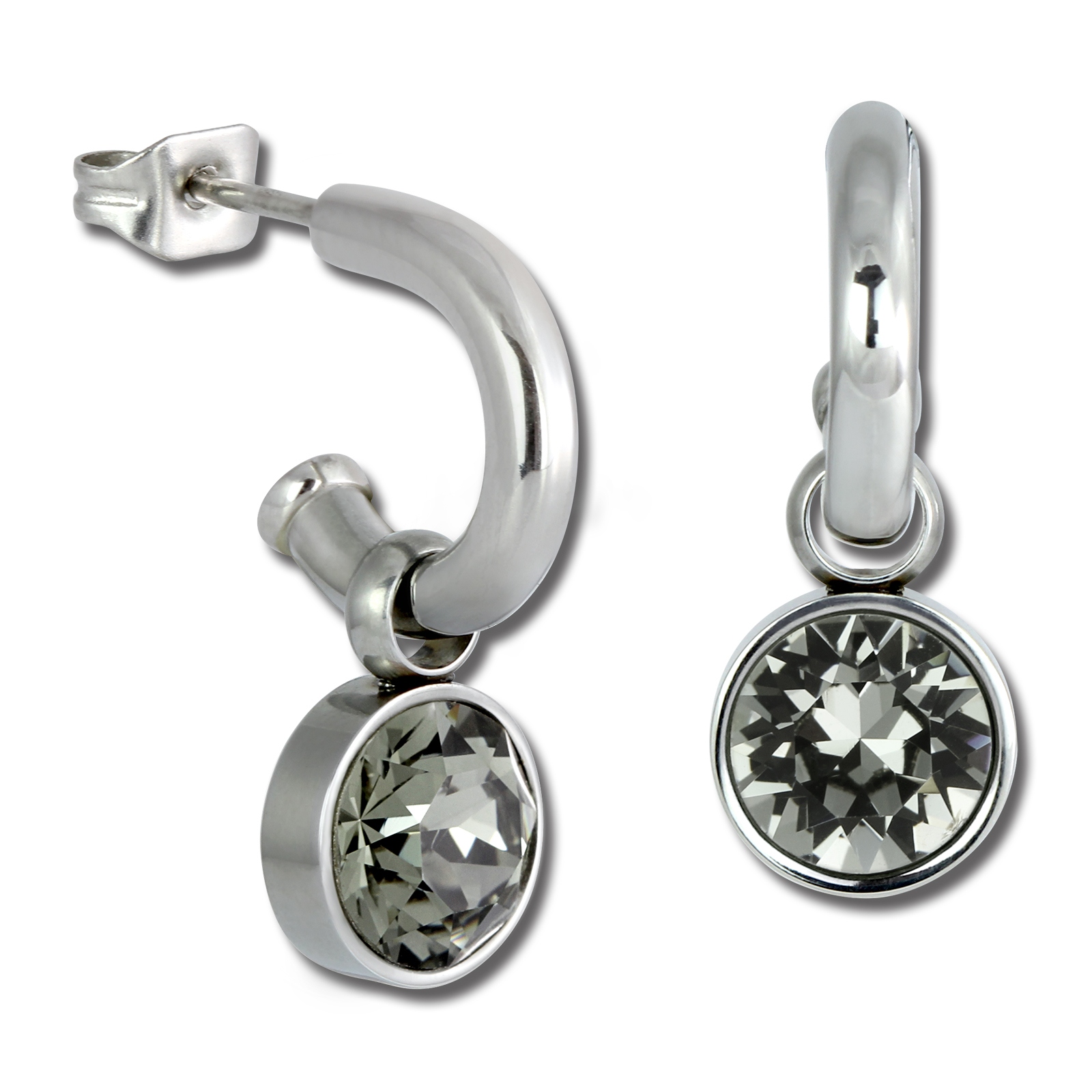 Amello Ohrringe Damen Edelstahl Creolen grau glitzernde Zirkonias silber ESOS02K