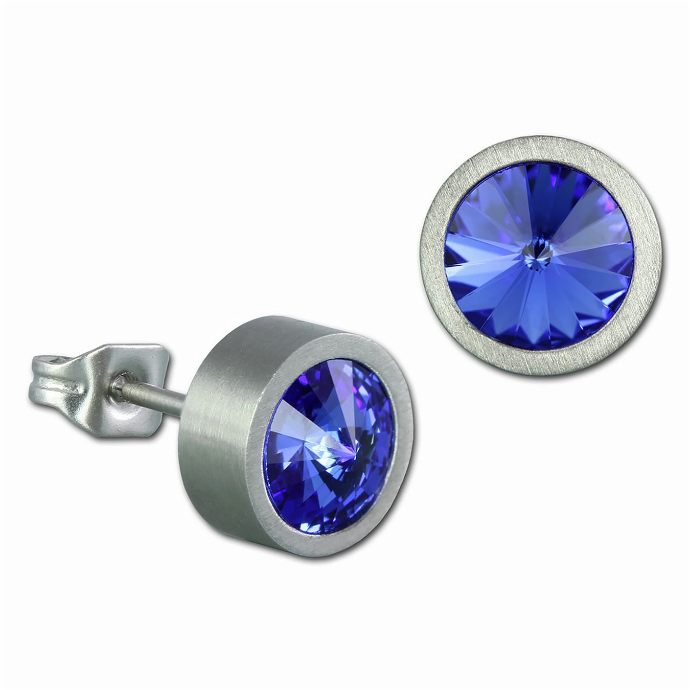 Amello Ohrringe Edelstahl Ohrstecker rund glitzernde Zirkonias blau ESOS03B