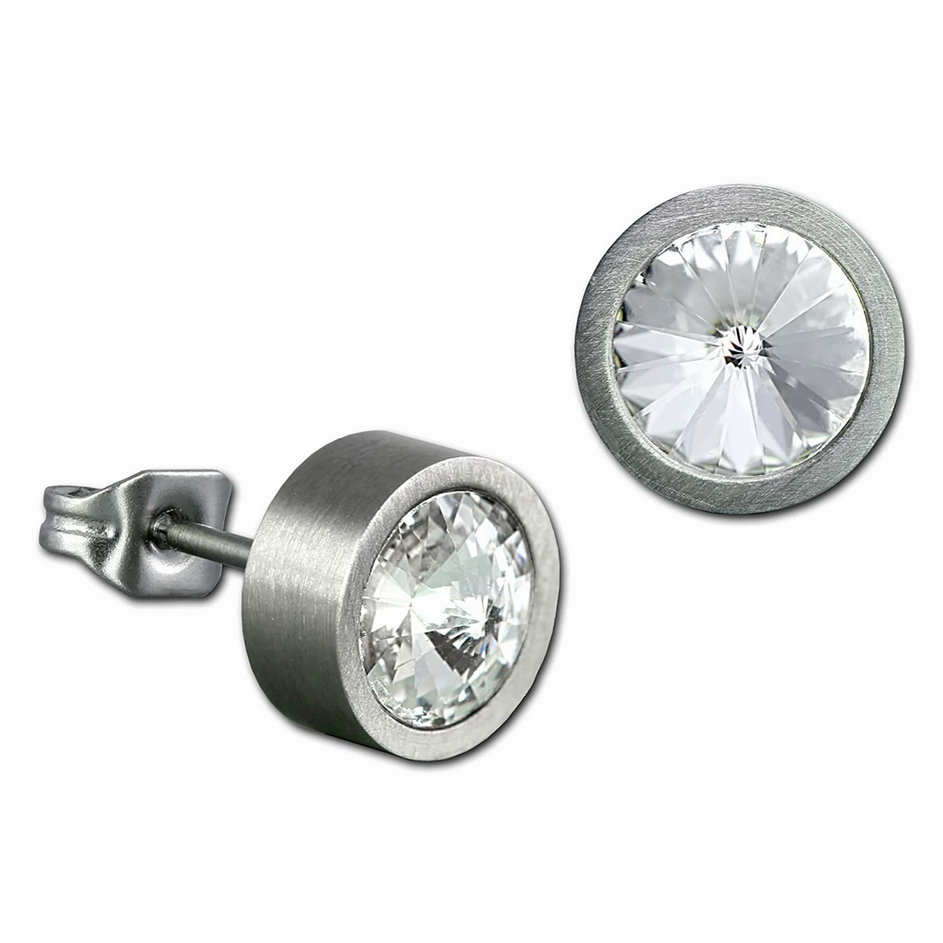 Amello Ohrringe Edelstahl Ohrstecker rund glitzernde Zirkonias weiß ESOS03W