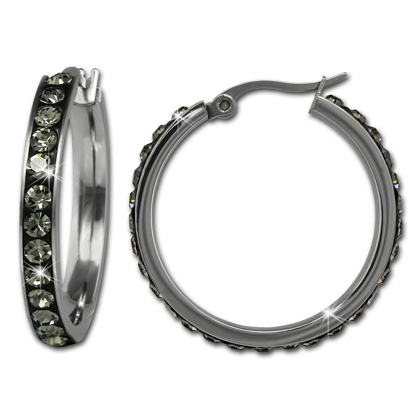 Amello Ohrringe Damen Edelstahl Creolen 30mm glitzernde Zirkonias grau ESOS04K