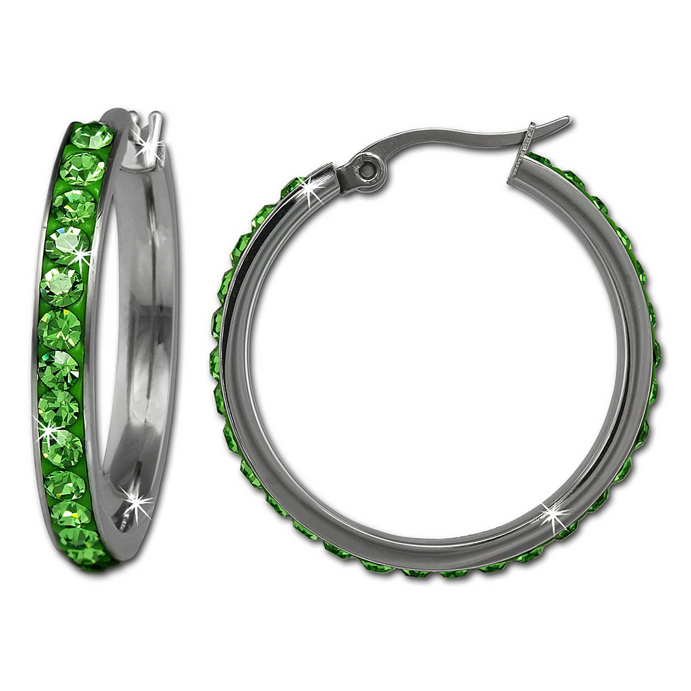 Amello Ohrringe Edelstahl Creolen 30mm glitzernde Zirkonias hellgrün ESOS04L