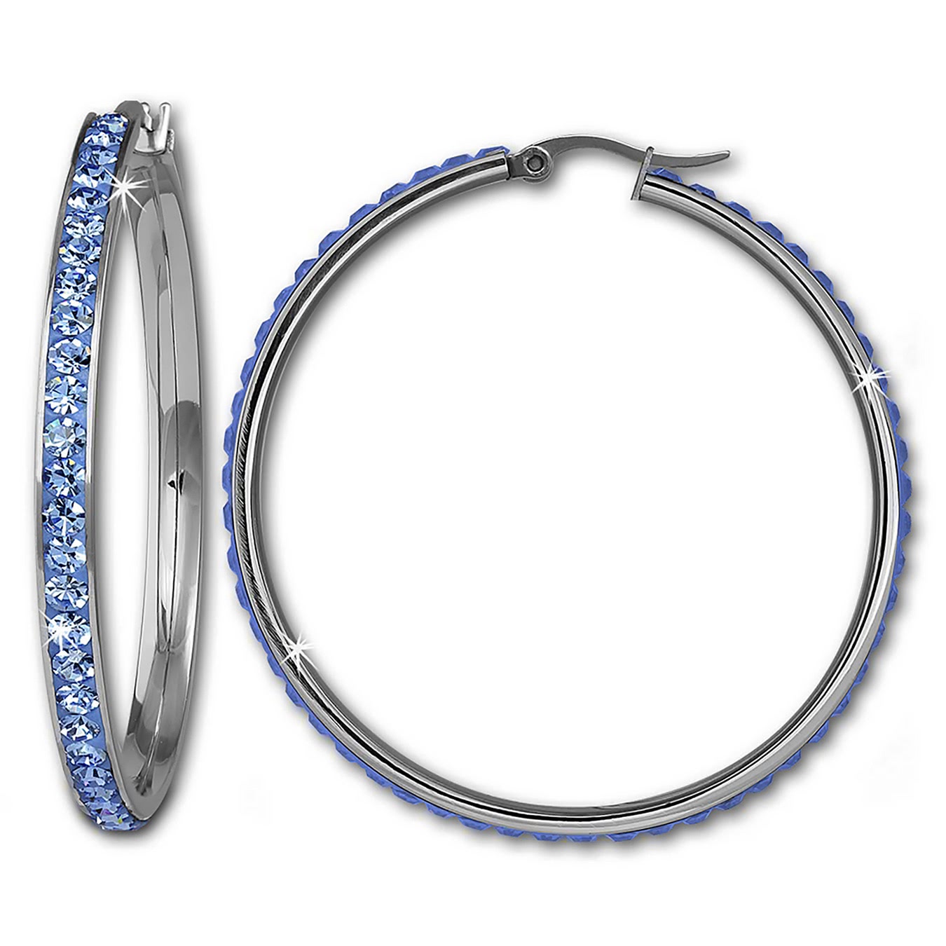 Amello Ohrringe Edelstahl Creolen 50mm glitzernde Zirkonias hellblau ESOS05H