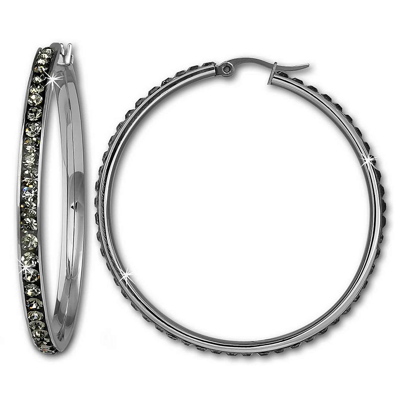 Amello Ohrringe Damen Edelstahl Creolen 50mm glitzernde Zirkonias grau ESOS05K