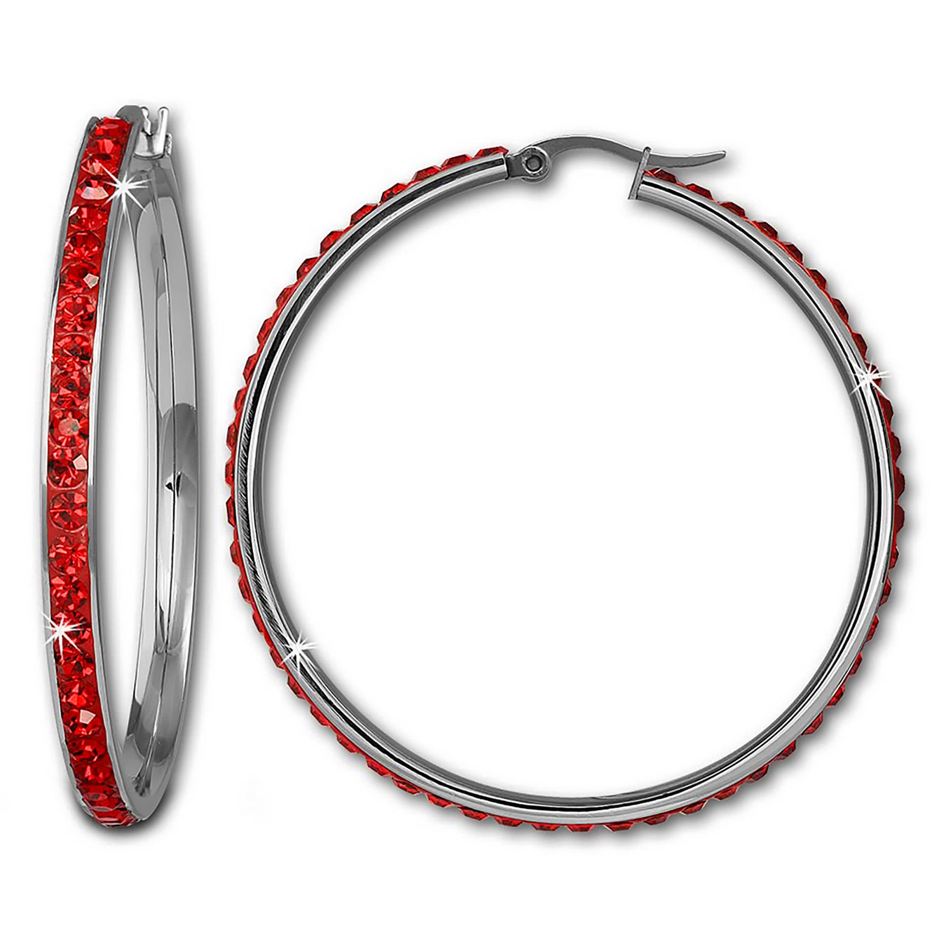 Amello Ohrringe Damen Edelstahl Creolen 50mm glitzernde Zirkonias rot ESOS05R