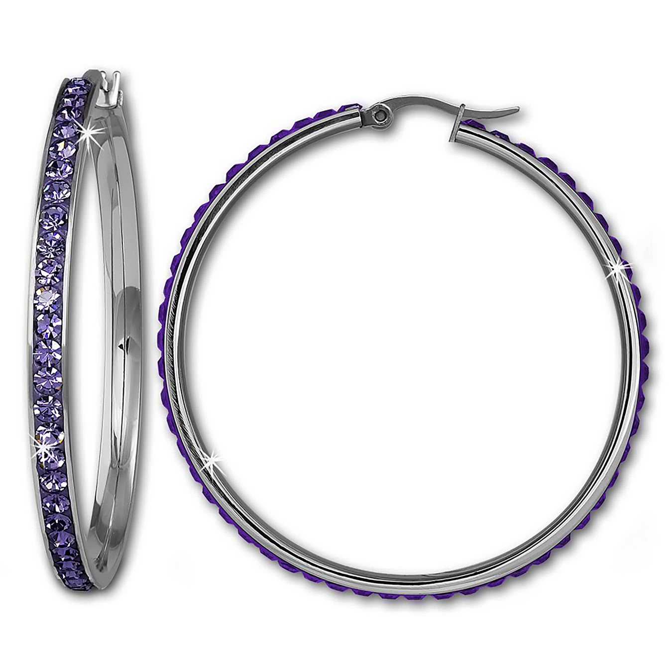 Amello Ohrringe Damen Edelstahl Creolen 50mm glitzernde Zirkonias lila ESOS05V