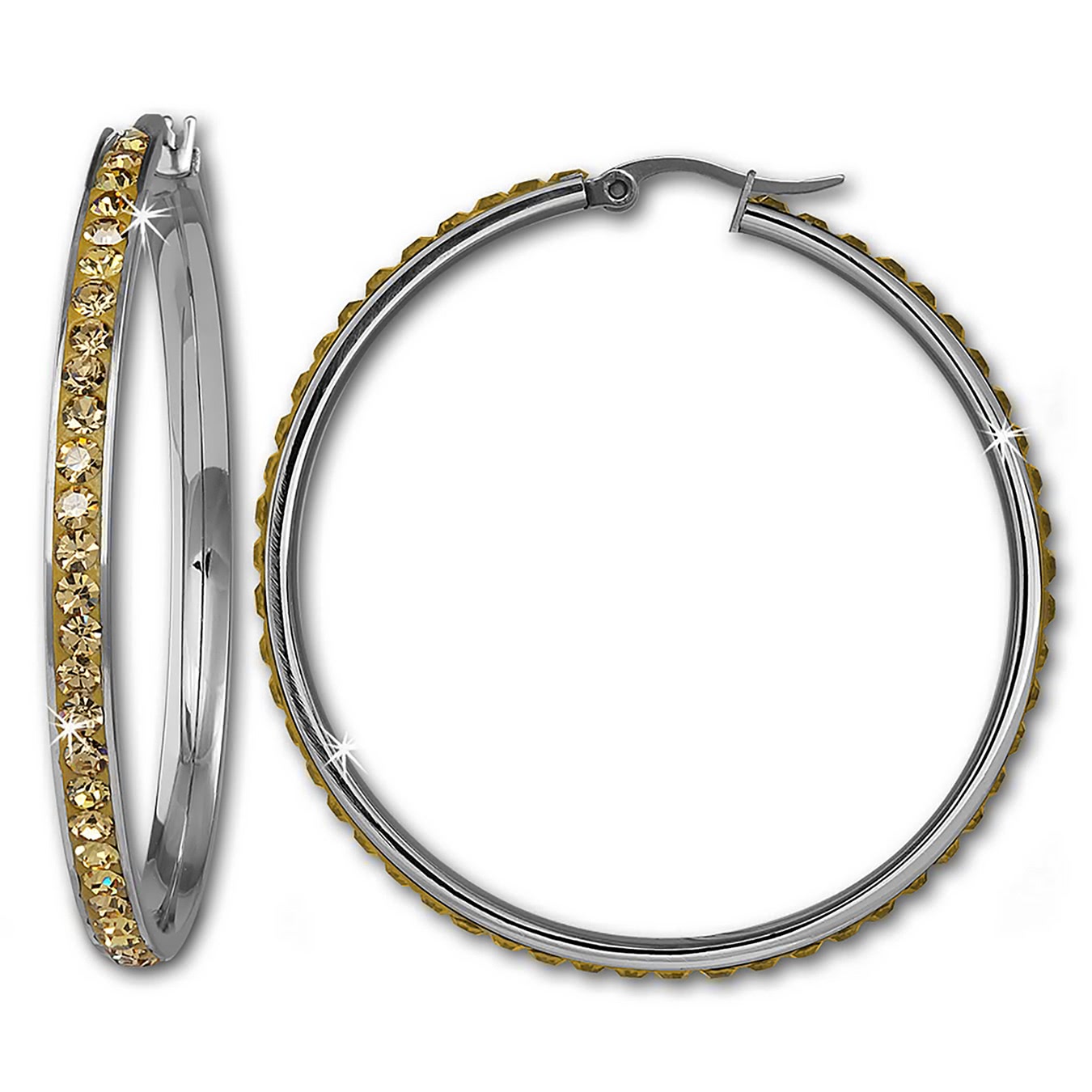Amello Ohrringe Edelstahl Creolen 50mm glitzernde Zirkonias bernstein ESOS05Y