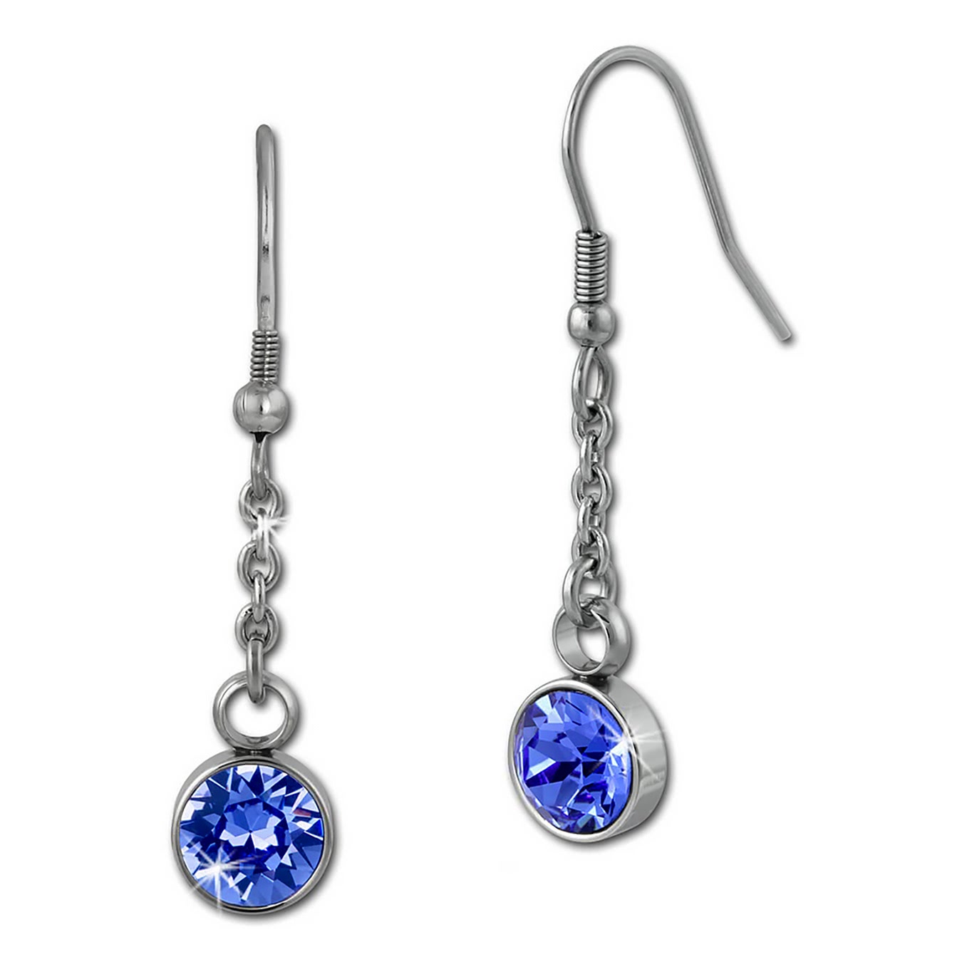 Amello Ohrringe Edelstahl Ohrhänger rund glitzernde Zirkonias blau ESOS06B