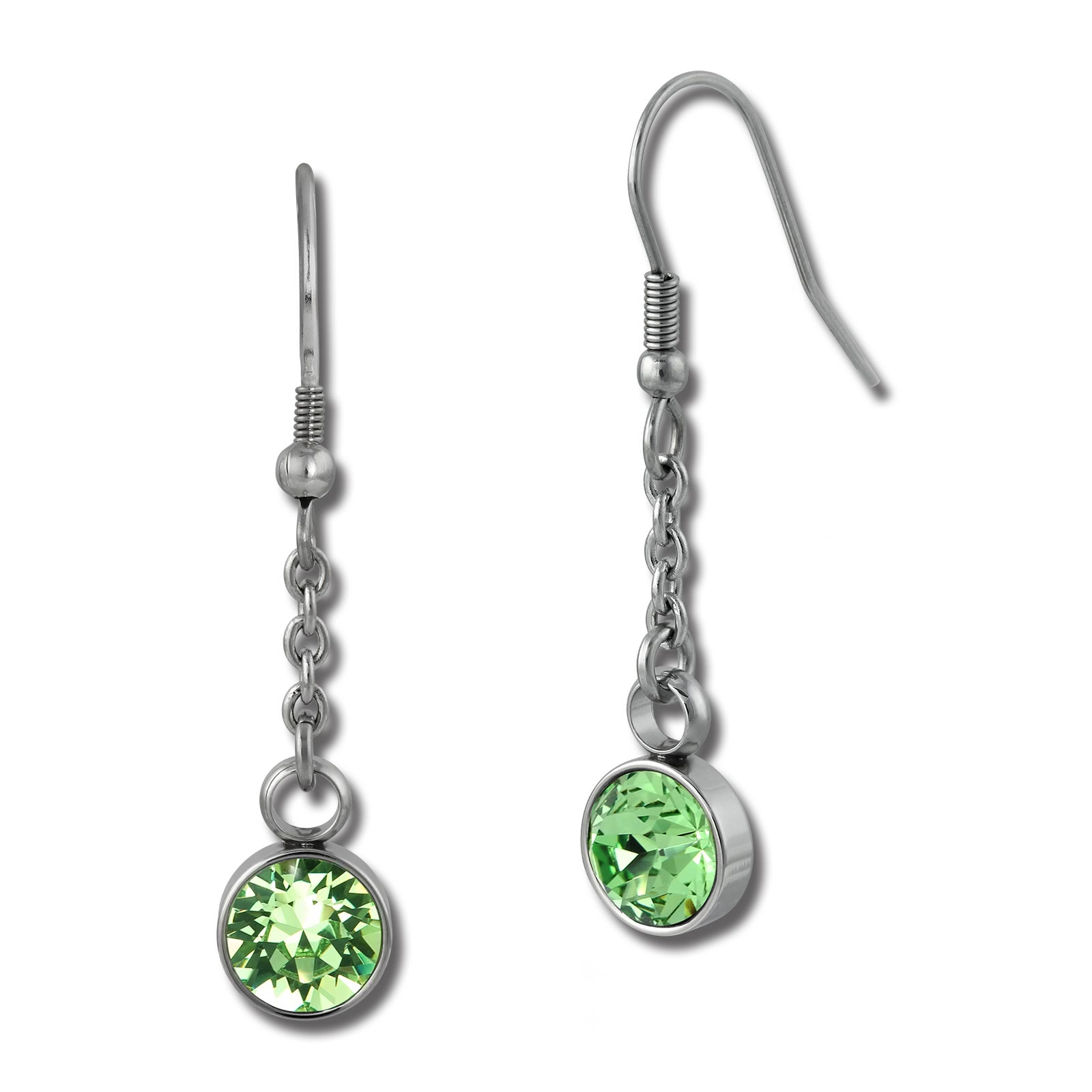Amello Ohrringe Edelstahl Ohrhänger rund glitzernde Zirkonias hellgrün ESOS06L