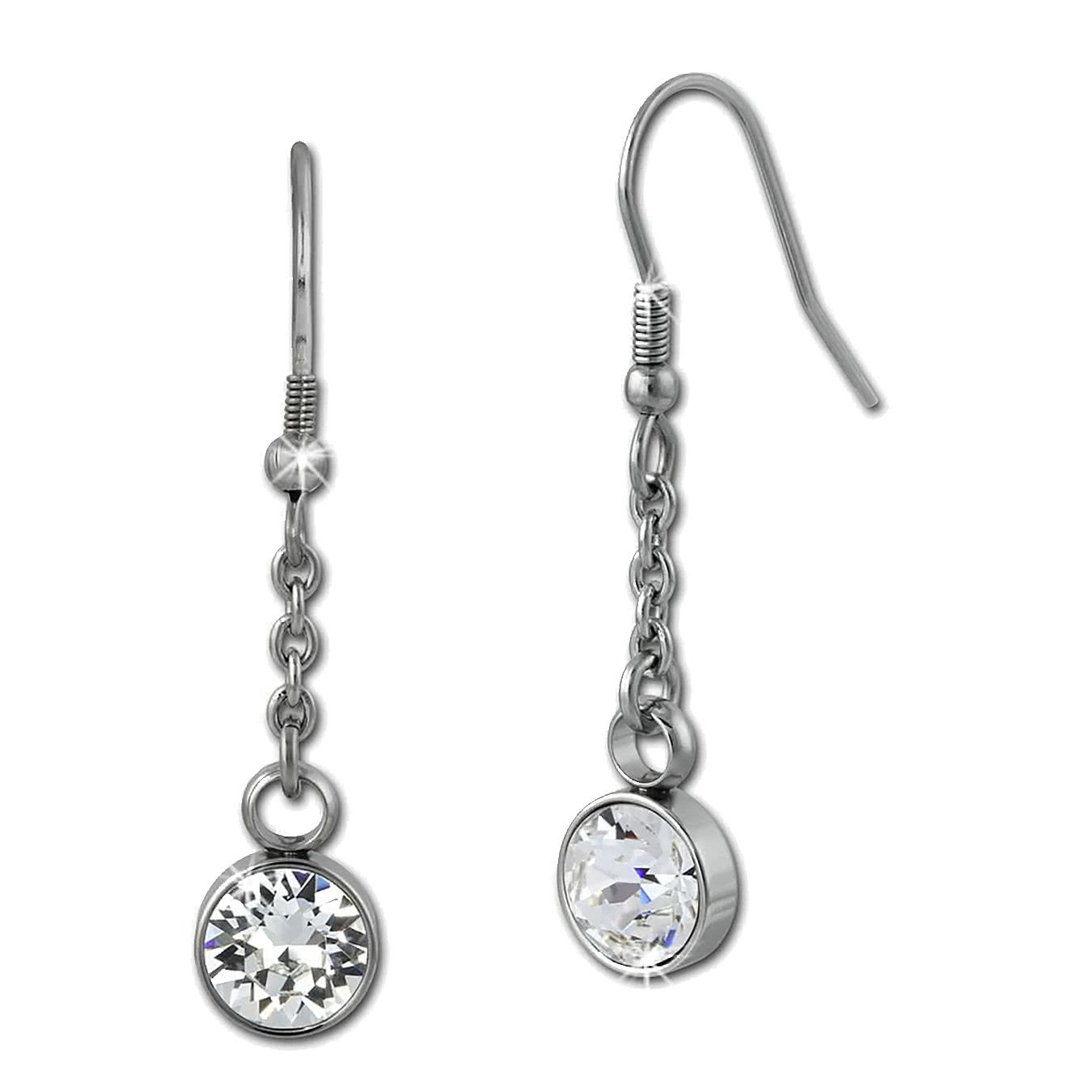 Amello Ohrringe Edelstahl Ohrhänger rund glitzernde Zirkonias weiß ESOS06W