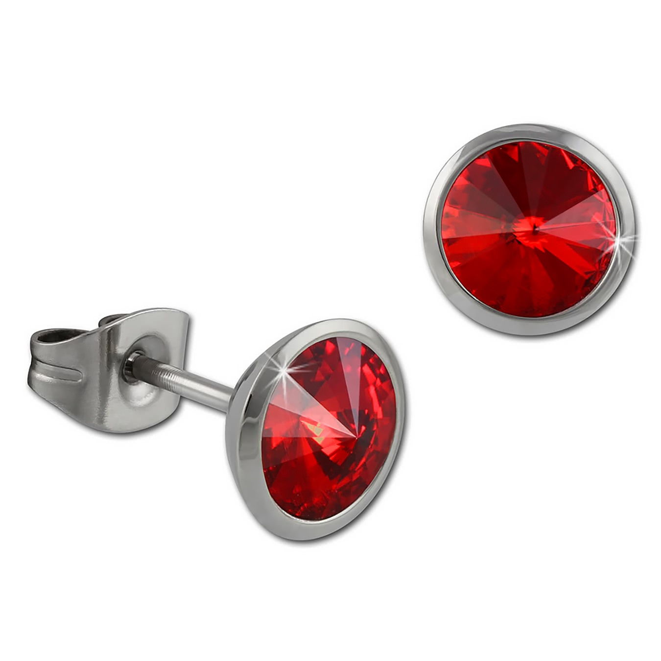 Amello Ohrringe Edelstahl Ohrstecker rund glitzernde Zirkonias rot ESOS07R