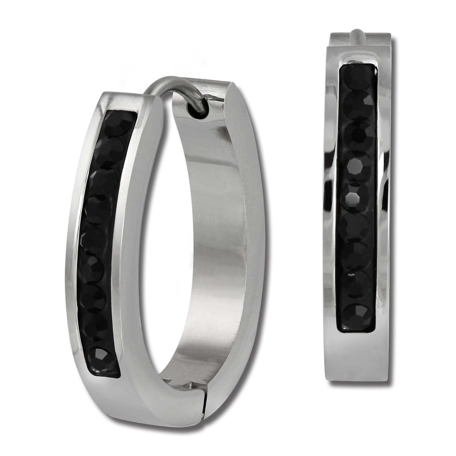 Amello Ohrringe Damen Edelstahl Creolen Oval Zirkonia silber schwarz ESOS13S