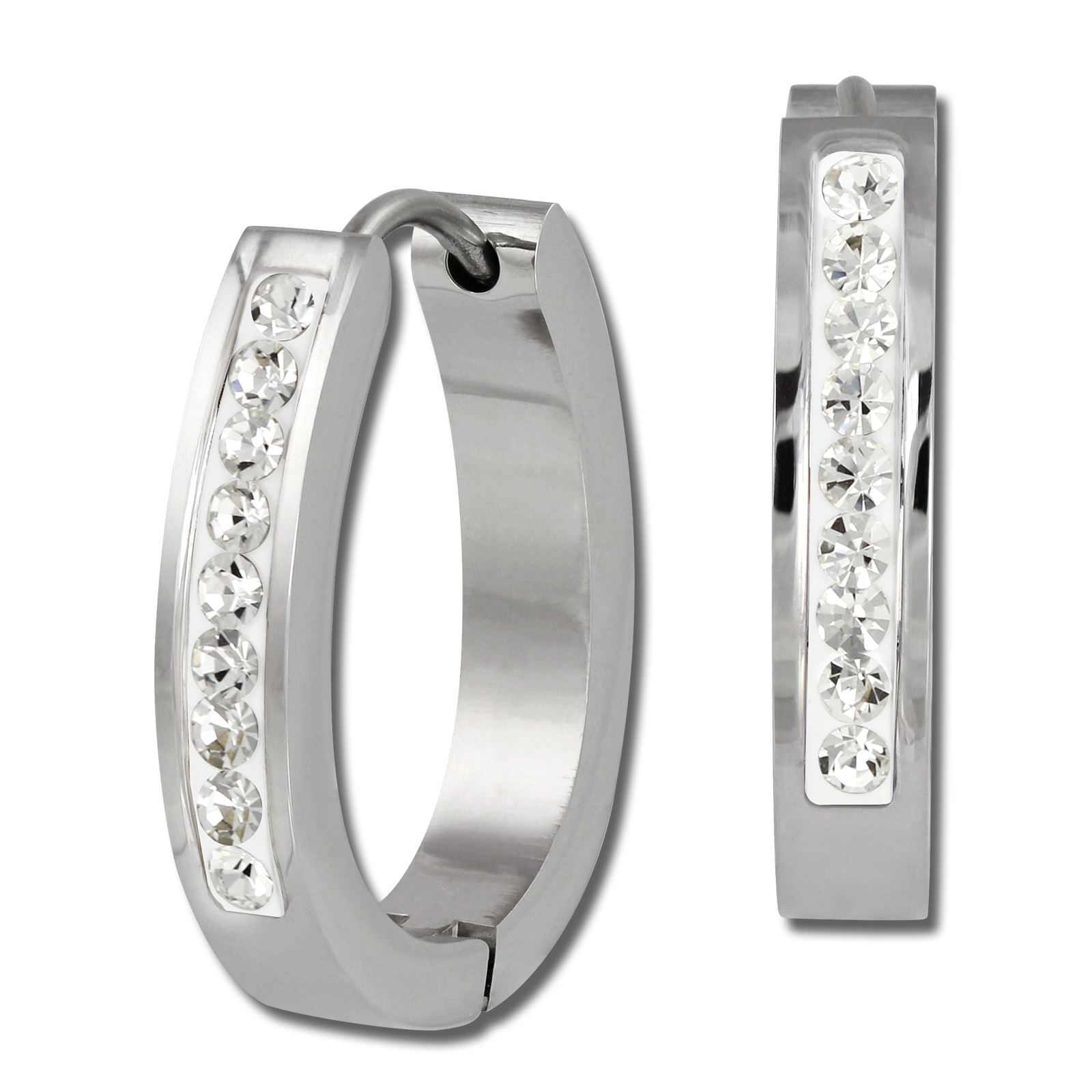 Amello Ohrringe Damen Edelstahl Creolen Oval Zirkonia silber weiß ESOS13W