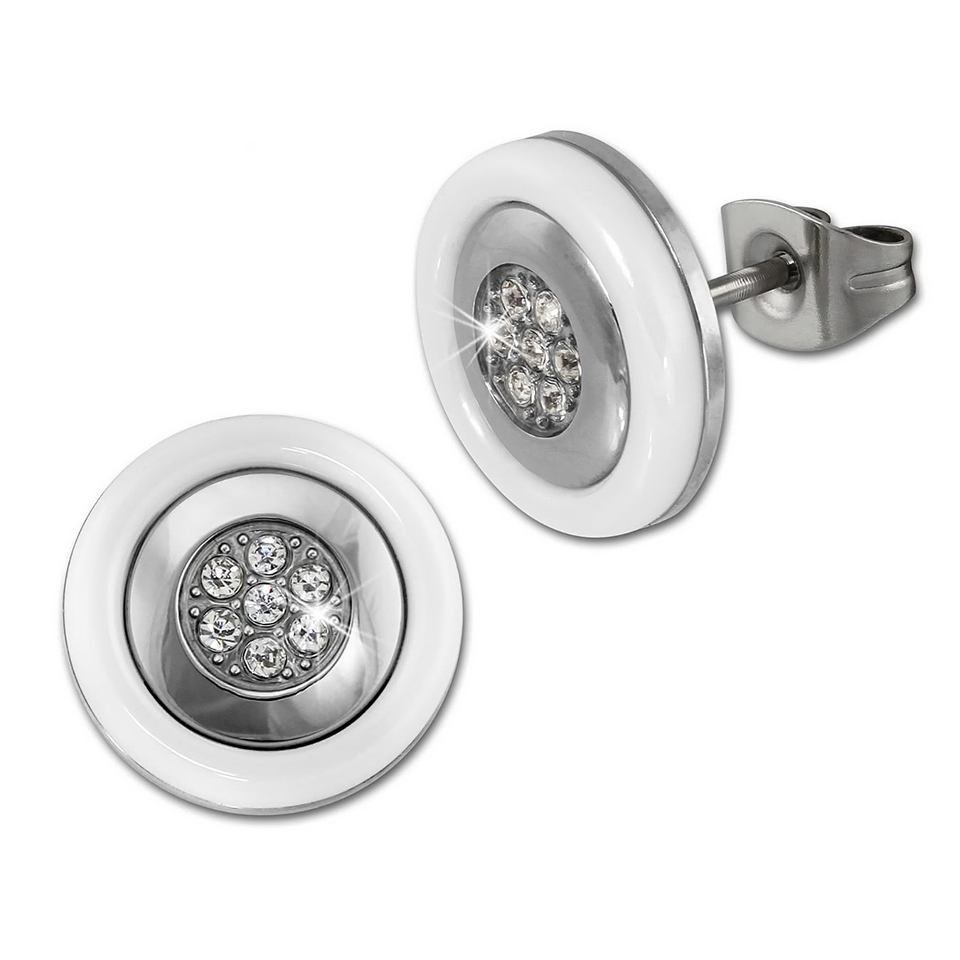 Artikelmerkmale: Amello Damen Ohrstecker silberfarben weiß glänzend ca. 1,3cm