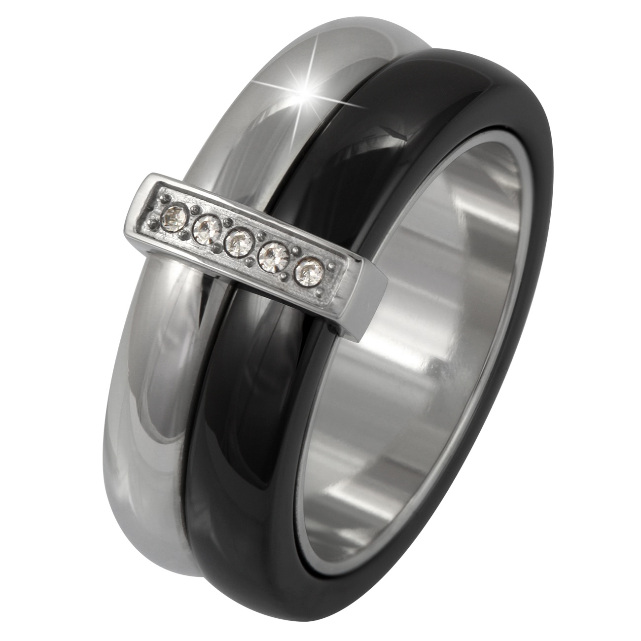 Amello Damen Ring Gr. 54 Zirkonia Edelstahl Keramik silber schwarz ESRX02S54