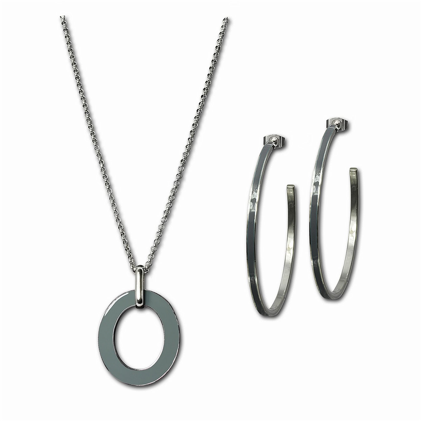 Artikelmerkmale: Amello Damen Schmucksets silber grauer weißer Rückseite Kette Emaillelack stahlfarben