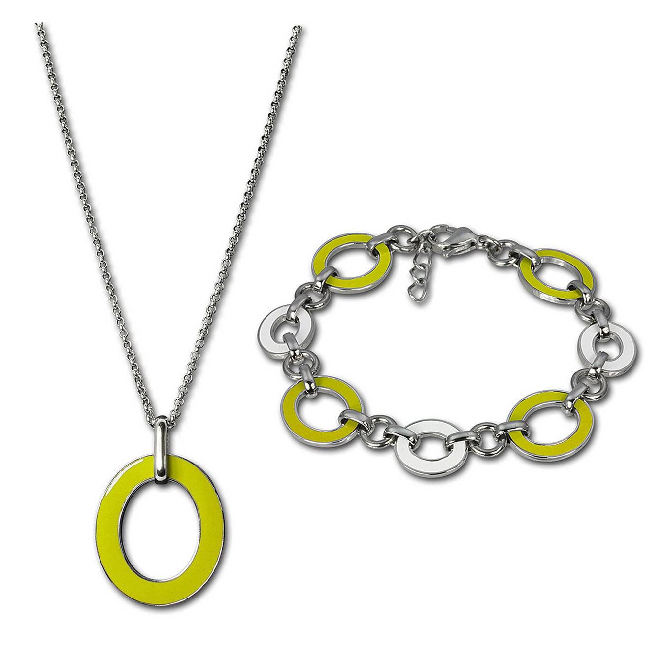 Artikelmerkmale: Amello Damen Schmucksets silber gelber weißer Emaillelack stahlfarben