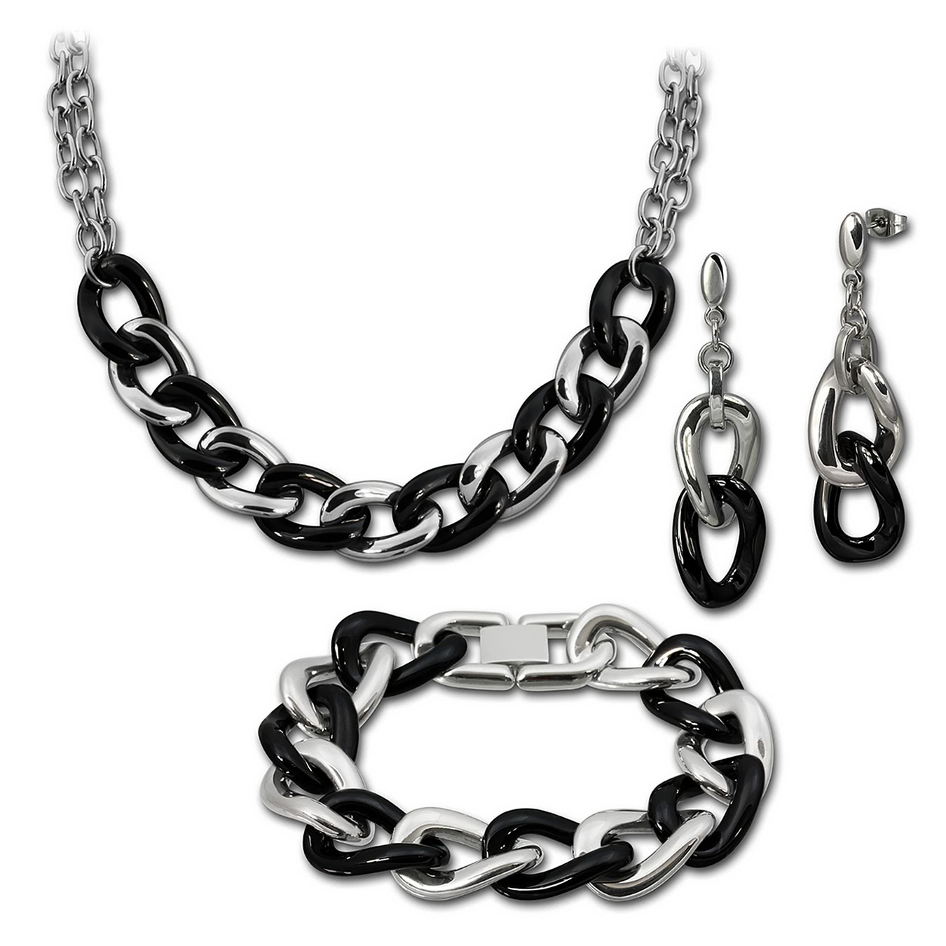 Artikelmerkmale: Amello Damen Schmucksets silberfarben schwarz glänzend