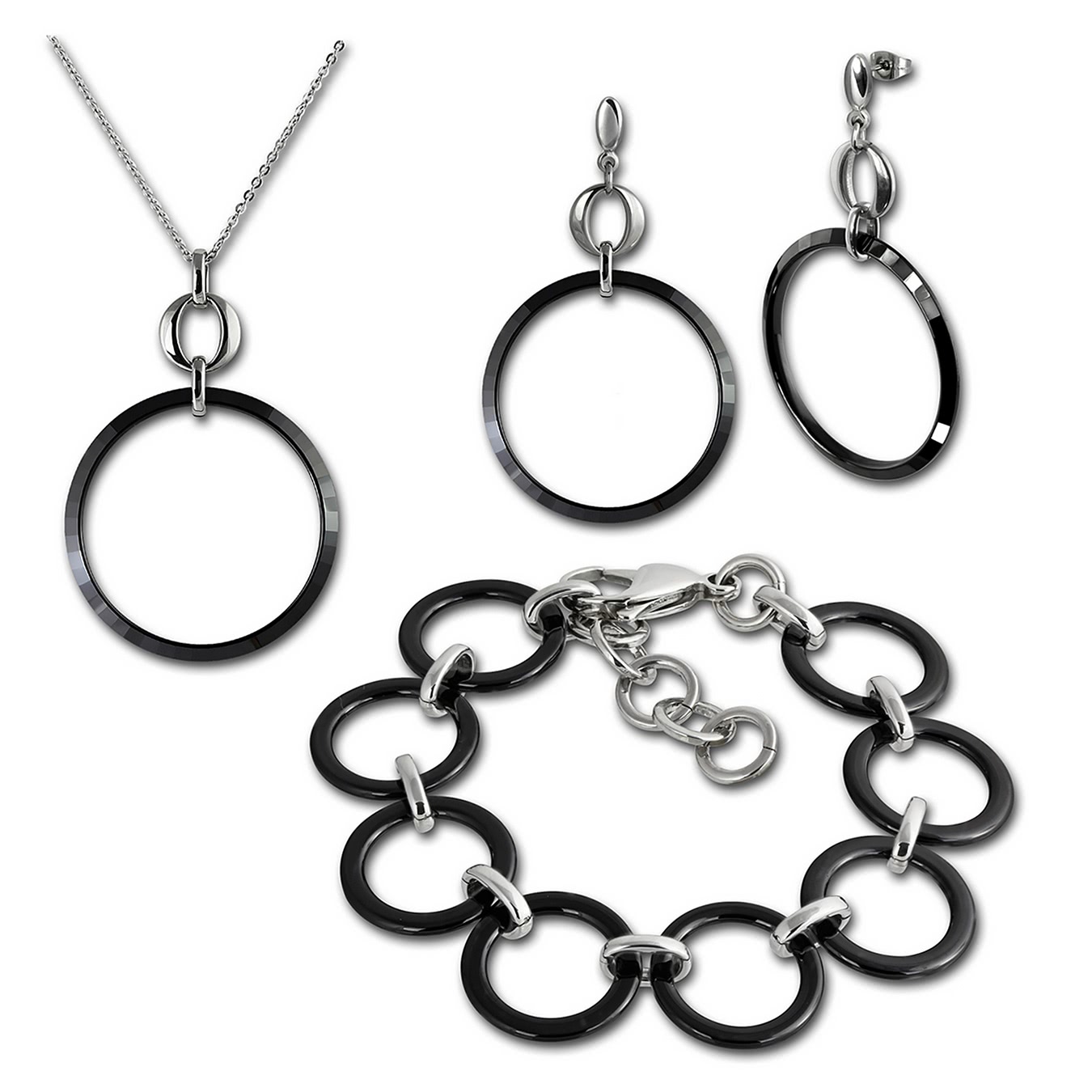 Artikelmerkmale: Amello Damen Schmucksets silberfarben schwarz glänzend