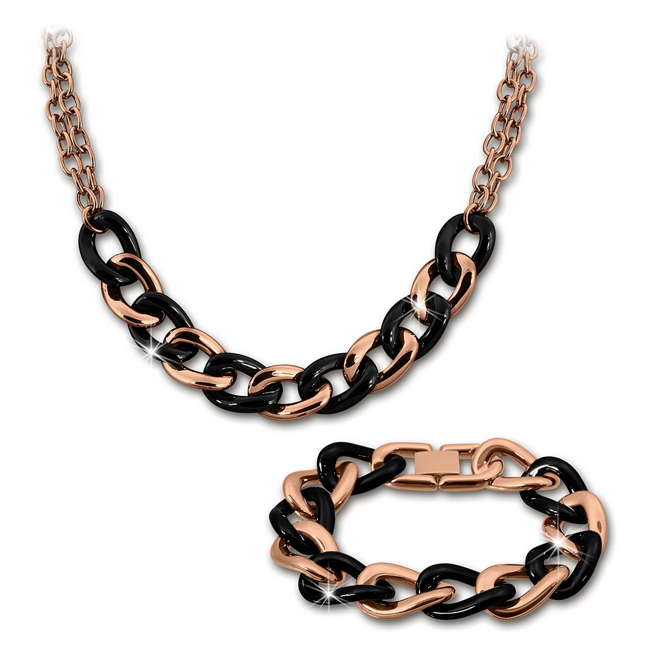 Das Produkt besteht aus Edelstahl, 333er Rosegold vergoldet und Vollkeramik (Edelstahl (Stainless Steel) und vergoldet (Roségold 333)).
