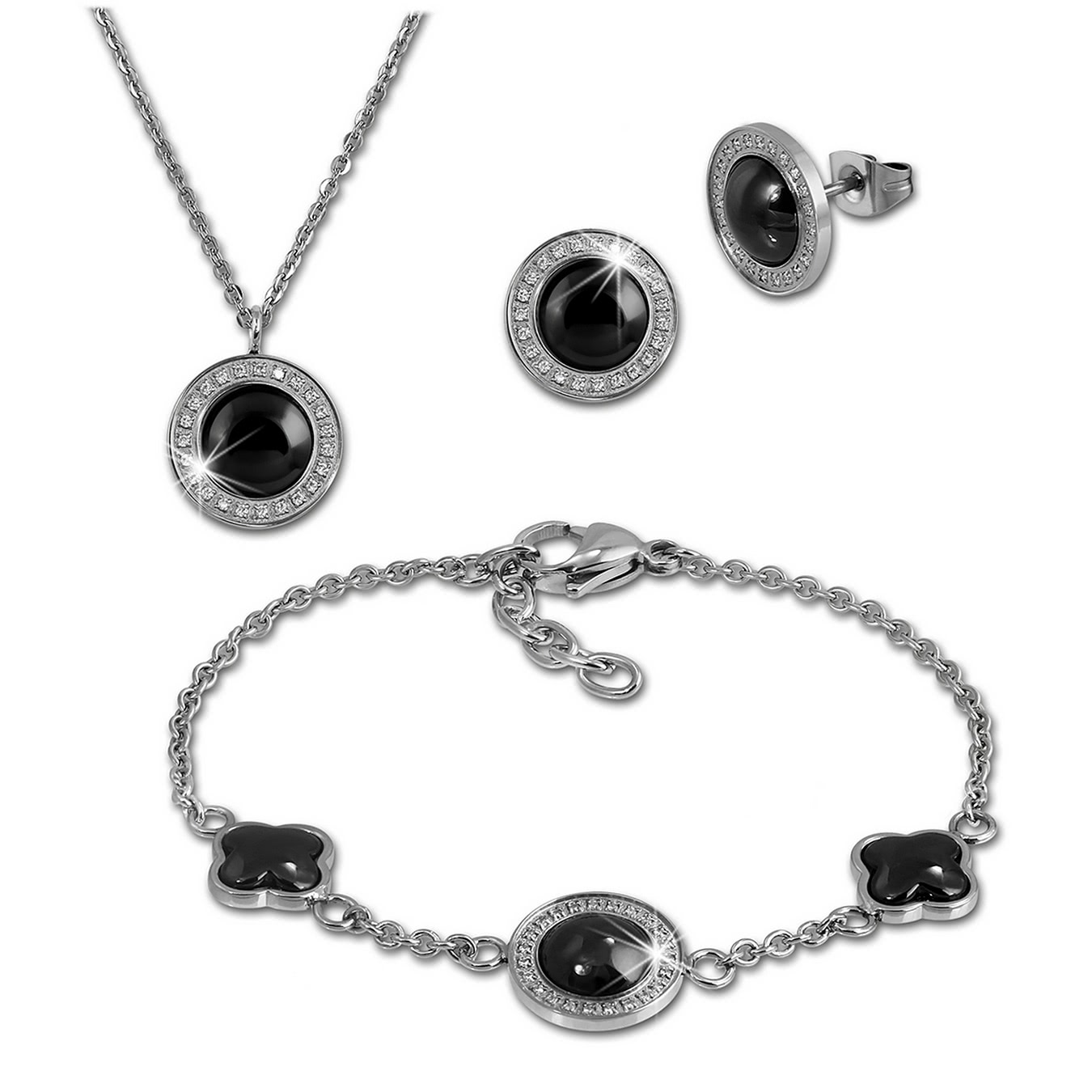 Artikelmerkmale: Amello Damen Schmucksets silberfarben schwarz glänzend