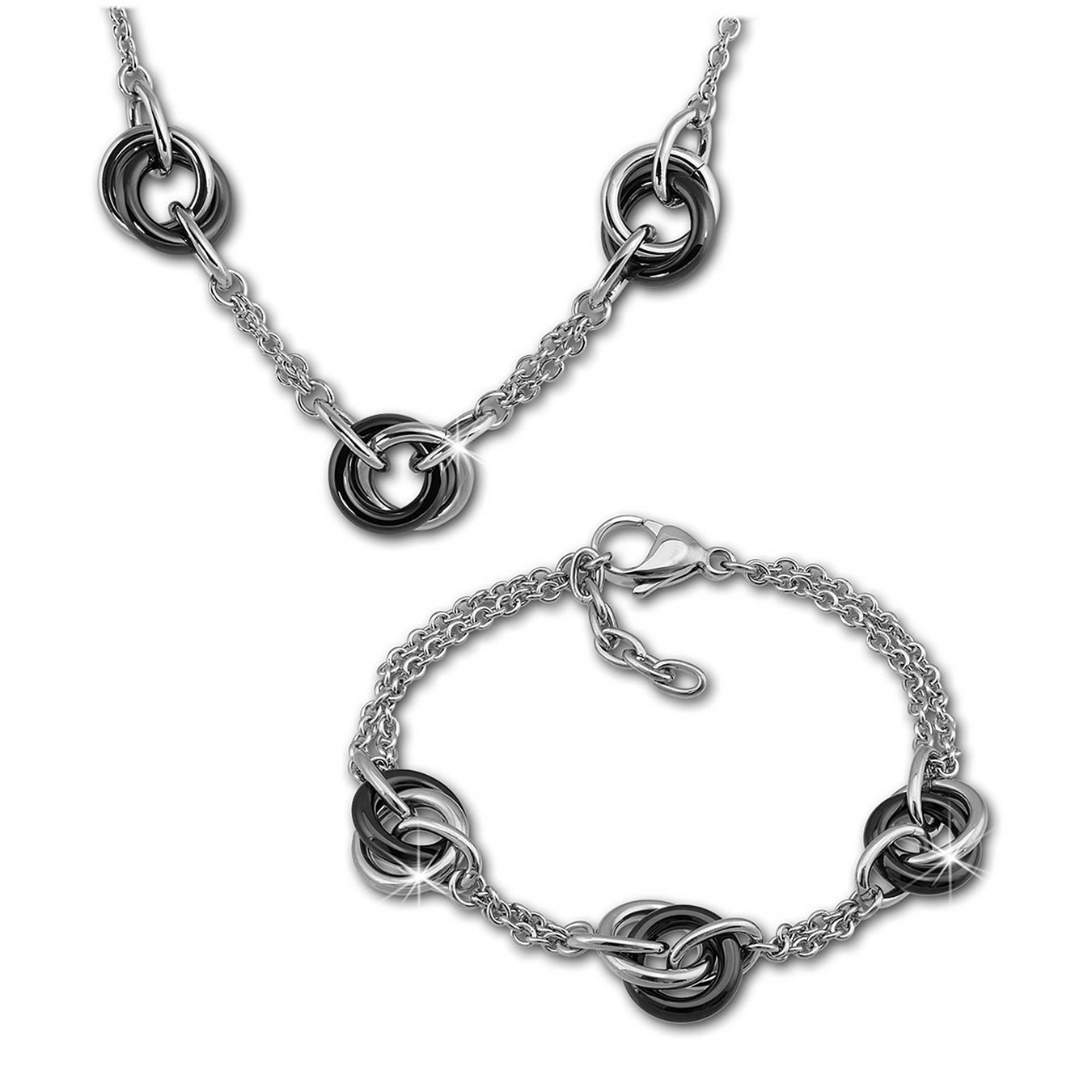 Artikelmerkmale: Amello Damen Schmucksets silberfarben schwarz glänzend