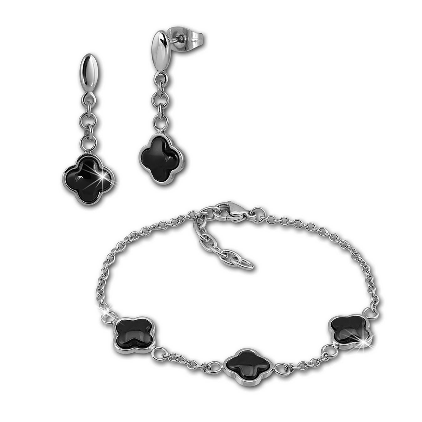 Artikelmerkmale: Amello Damen Schmucksets silberfarben schwarz glänzend