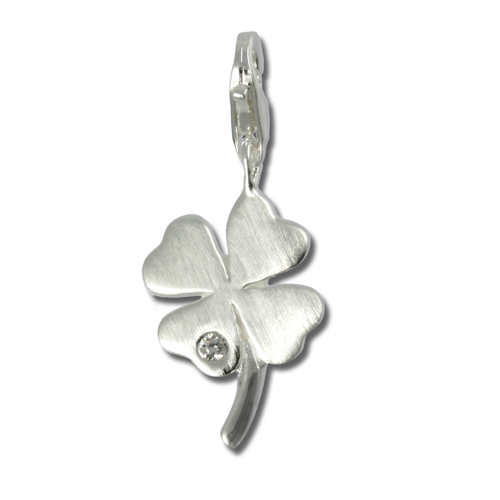 SilberDream Charm Anhänger 925er Echt Silber Zirkonia Kleeblatt matt FC248M