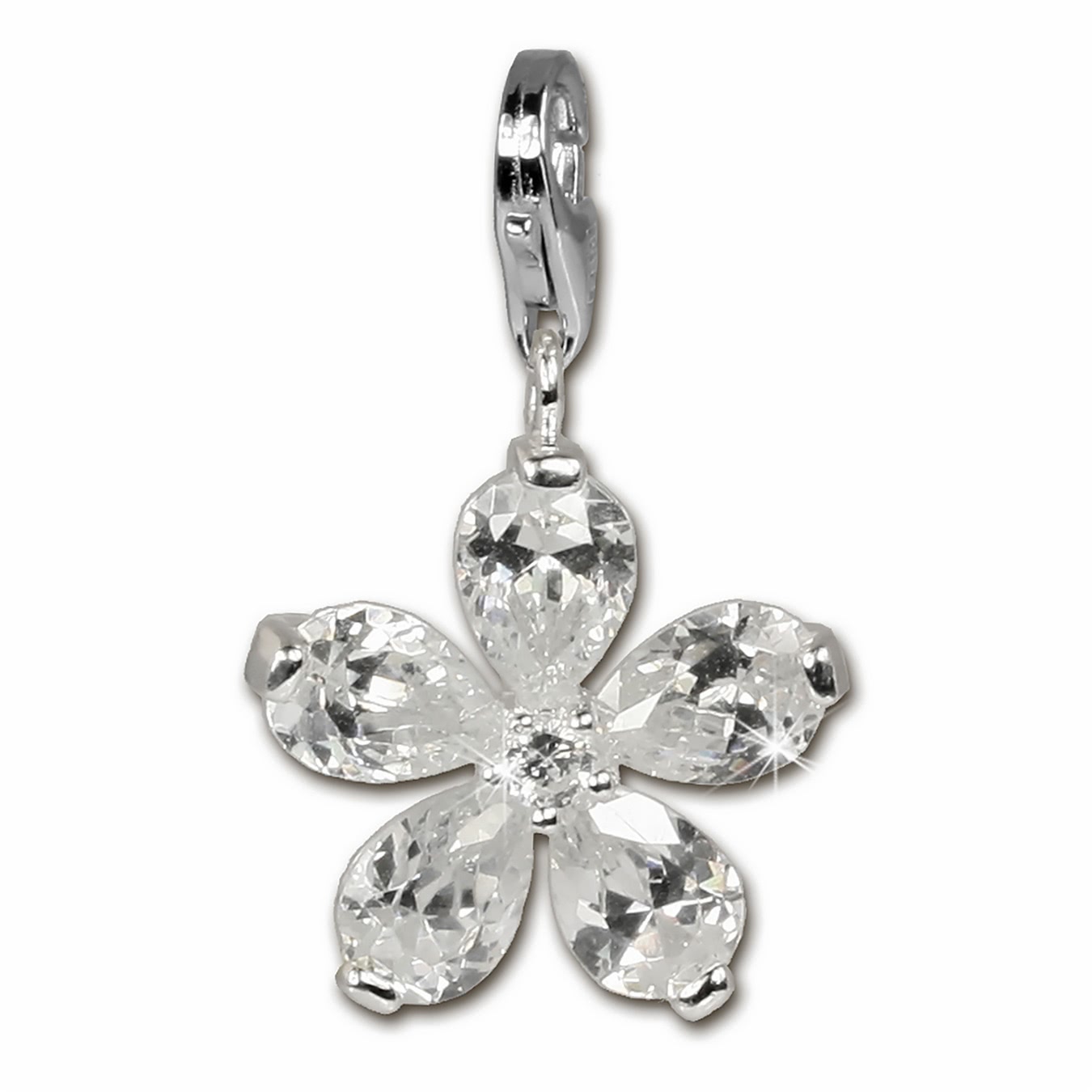 SilberDream Charm Anhänger 925er Echt Silber weiß Zirkonia Blume FC4117