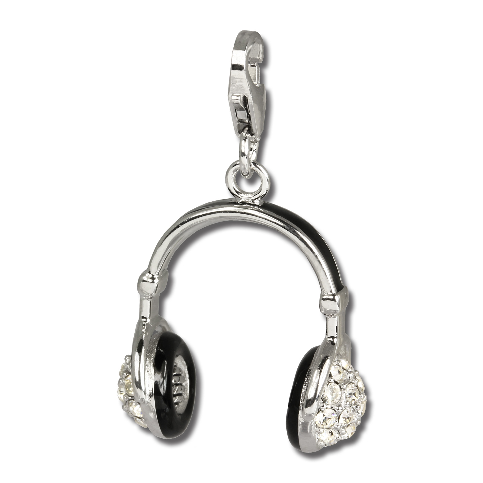 SilberDream Charm Anhänger 925 Echt Silber schwarz Zirkonia Kopfhörer FC658