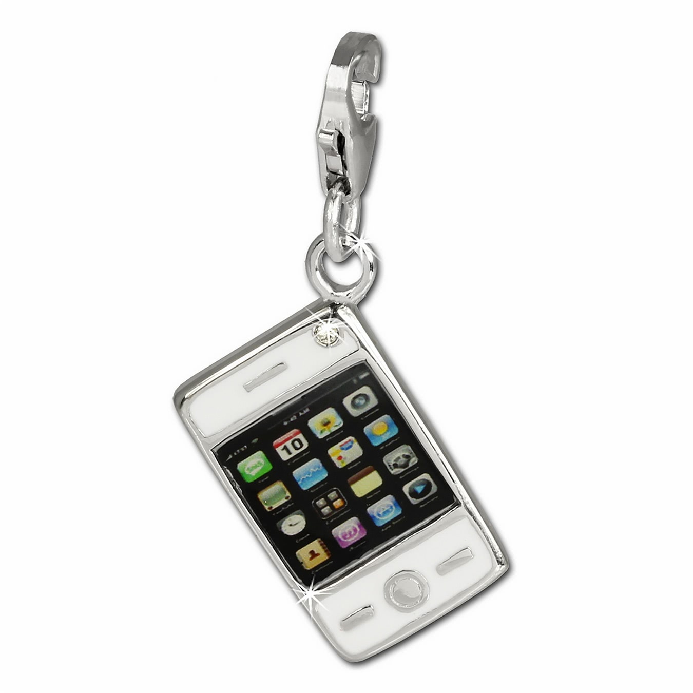 SilberDream Charm Anhänger Echt Silber s/w Zirkonia Smartphone Handy FC659