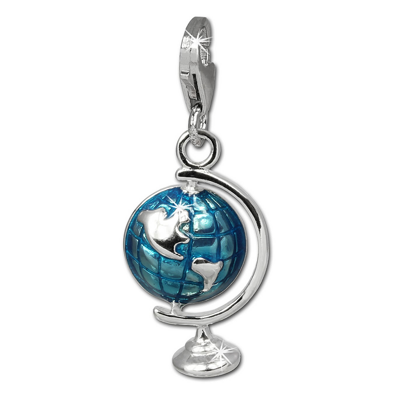 SilberDream Charm Armband Anhänger 925er Silber Emaille blau Globus FC833B