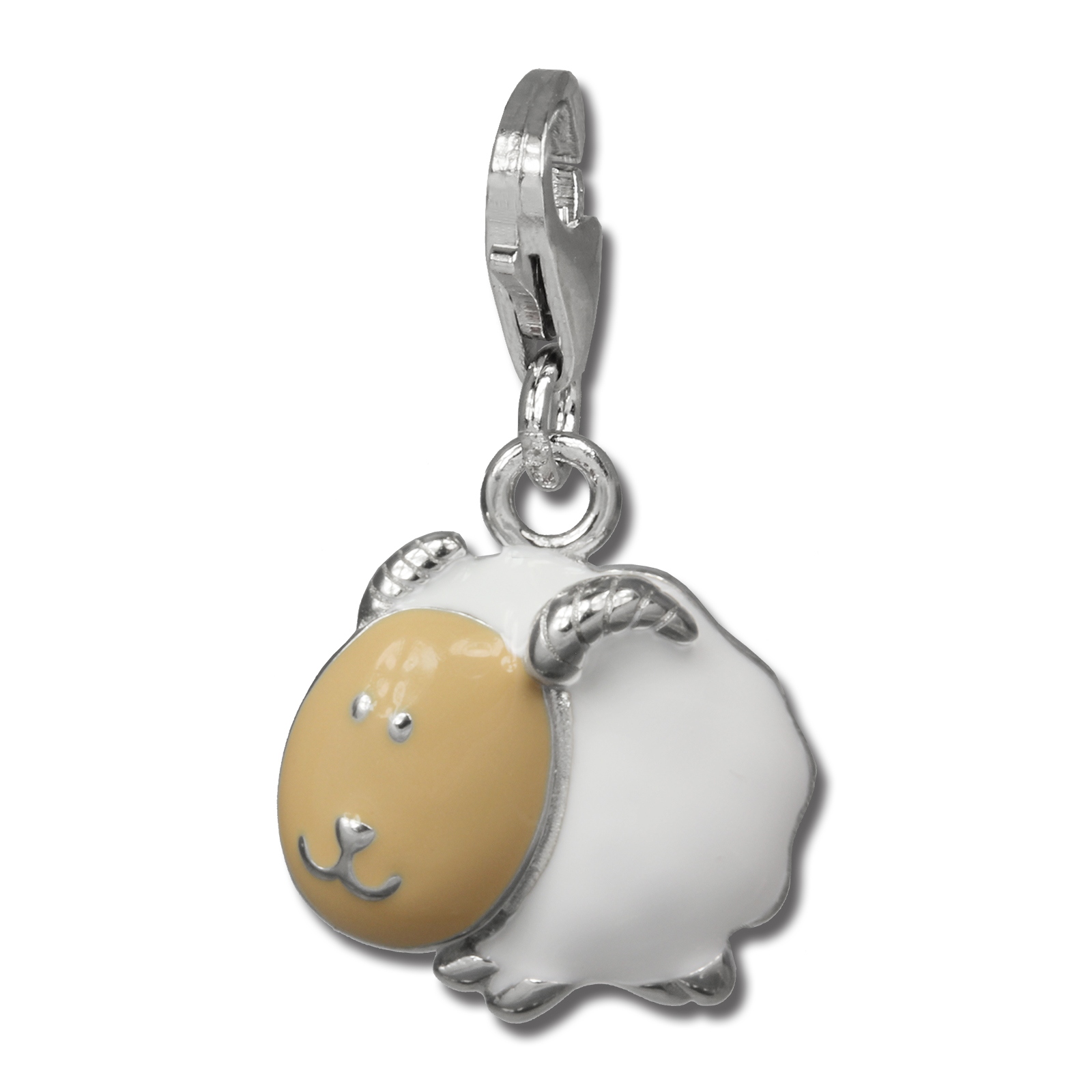 SilberDream Charm Anhänger 925er Silber Emaille weiß Schaf Hörnern FC839W