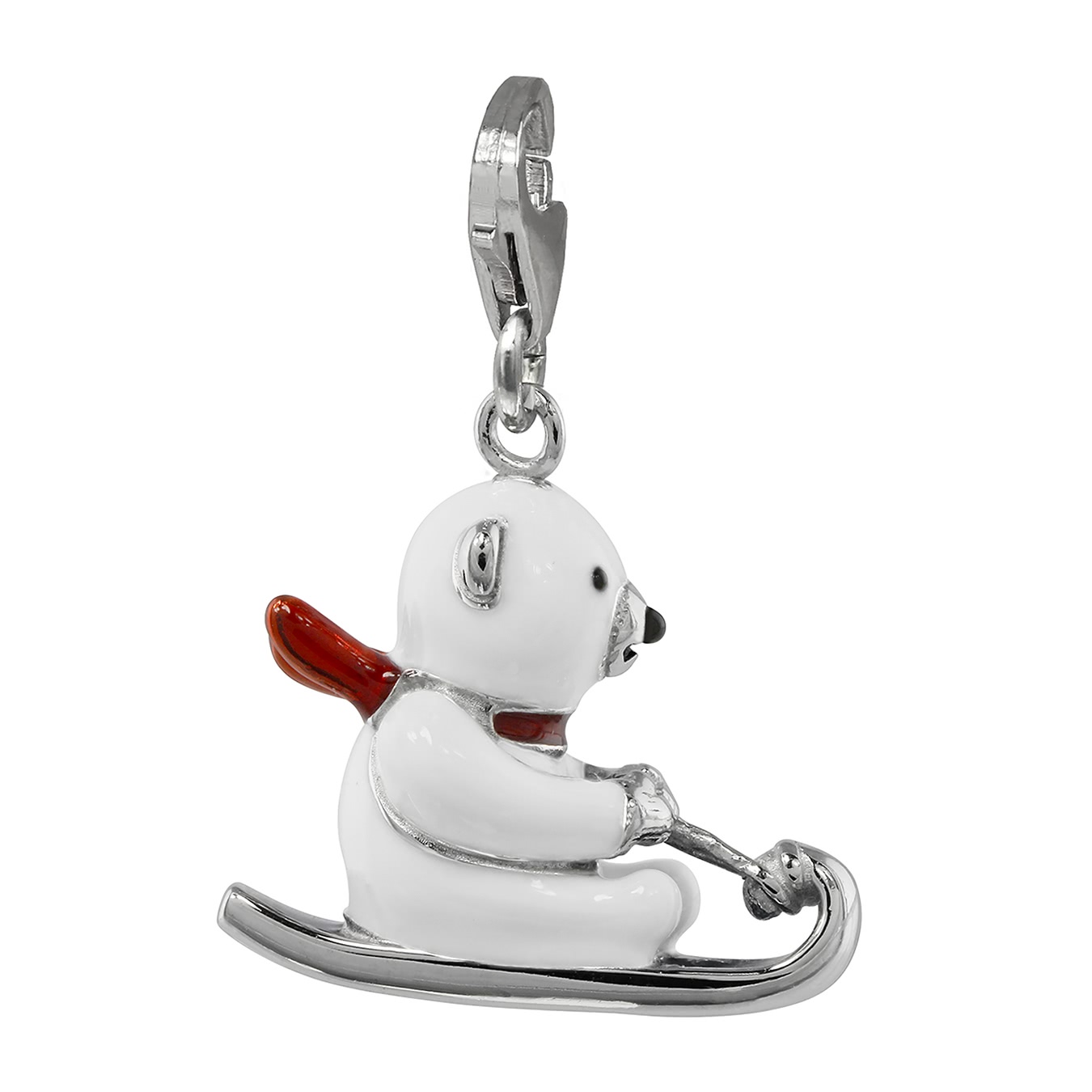 SilberDream Charm Anhänger 925er Silber Emaille weiß Bär auf Schlitten FC850W