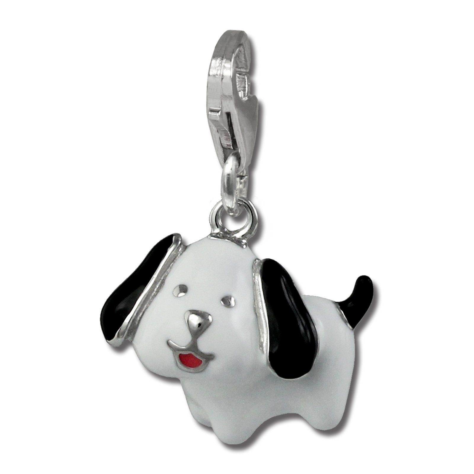 Artikelmerkmale: SilberDream Hündchen Charms-Anhänger silber weiß schwarz FC886W