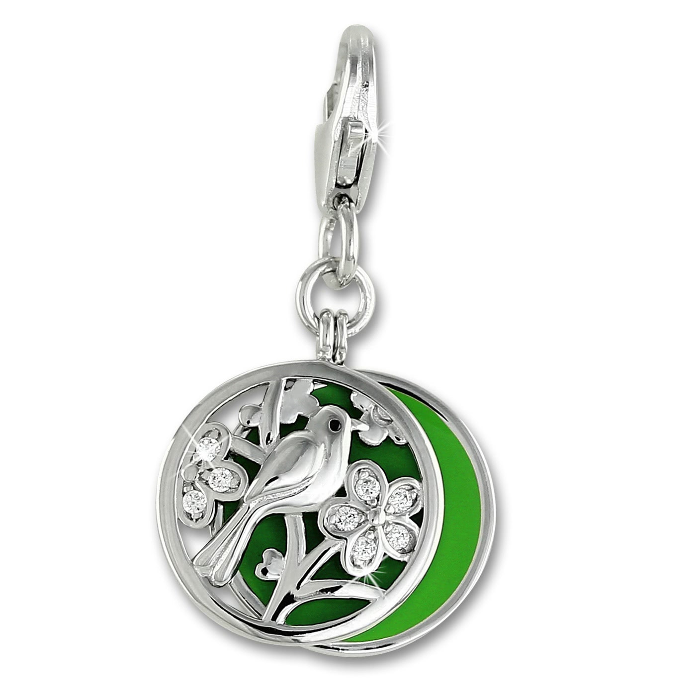 SilberDream Charmsanhänger Vogel 925 Silber Emaille Zirkonia Charm grün FC887G