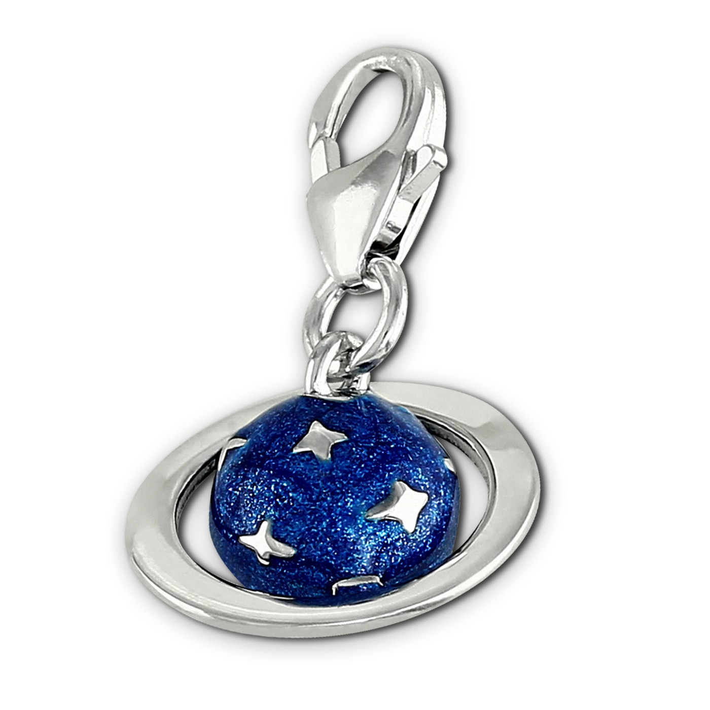 SilberDream Charmsanhänger Saturn Planet 925 Silber Armband Charm blau FC902B