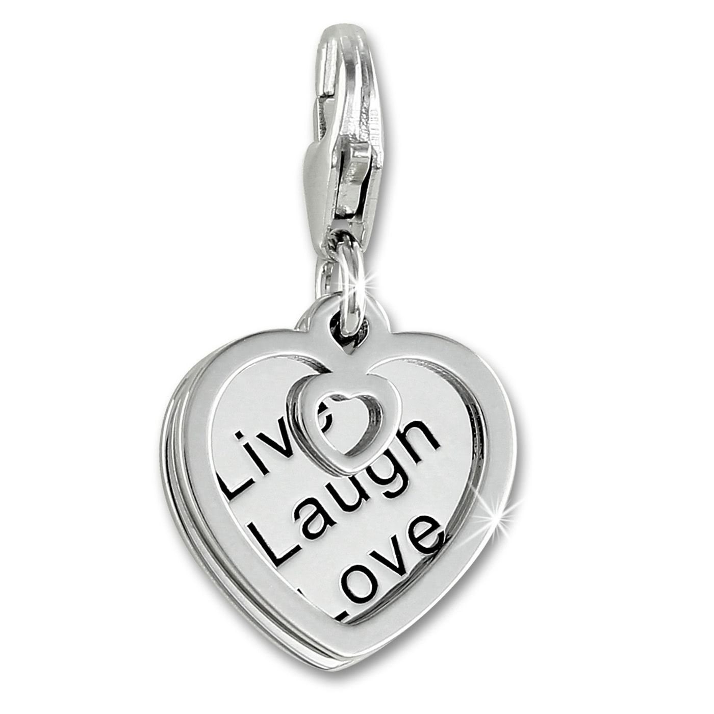 SilberDream Charmsanhänger Herz Lebe Lache Liebe 925 Silber Armband Charm FC905J