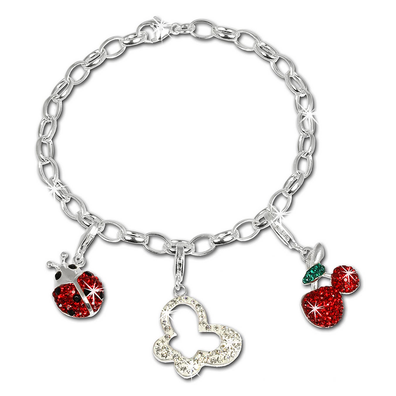 Damen Jugend SilberDream Charms 925 Silber Charm Sets weiß rot grün schwarz FCA141