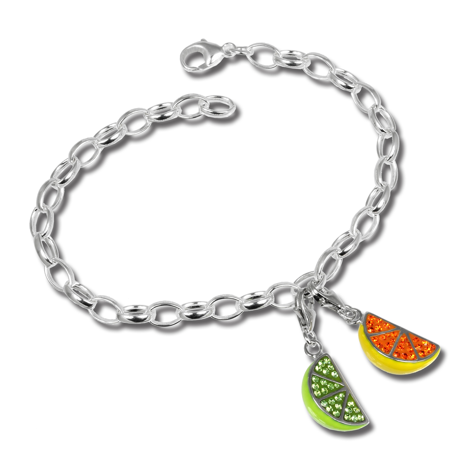 Damen Jugend SilberDream Charms 925 Silber Charm Sets orange hellgrün FCA143