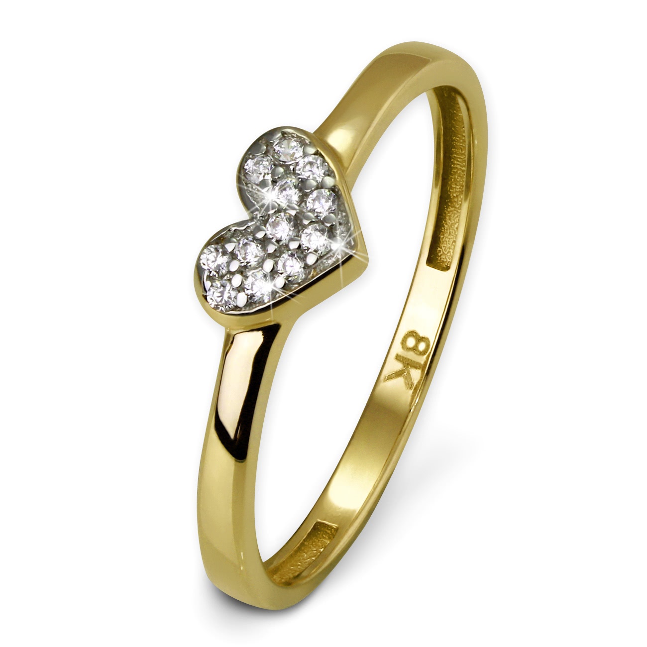 GoldDream 333er Gelbgold Ring Gr.54 Gold 8 Karat Herz Zirkonia weiß GDR503Y54