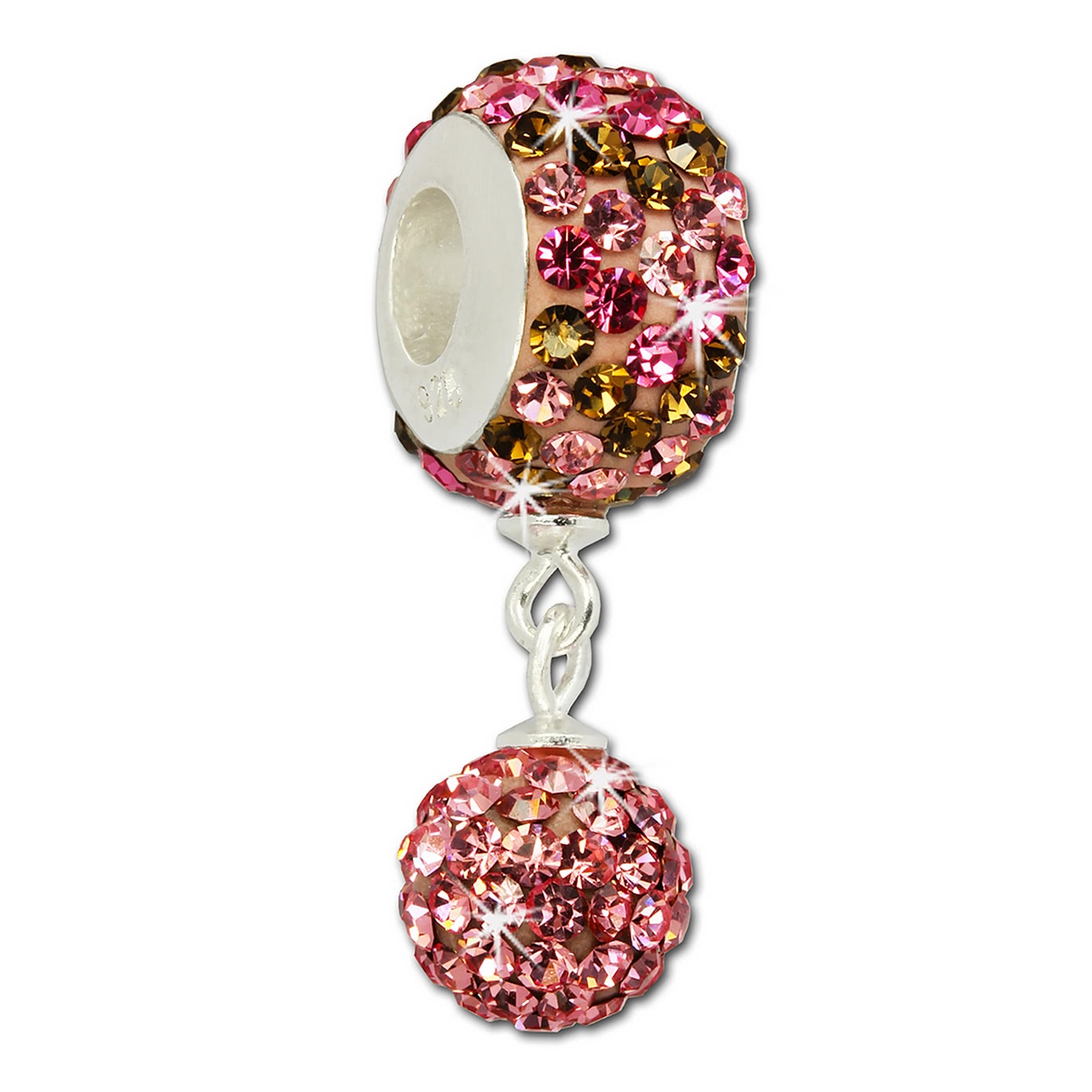SilberDream Damen Bead rosa braun Bommel Kristall 925er ECHT Silber GSB406