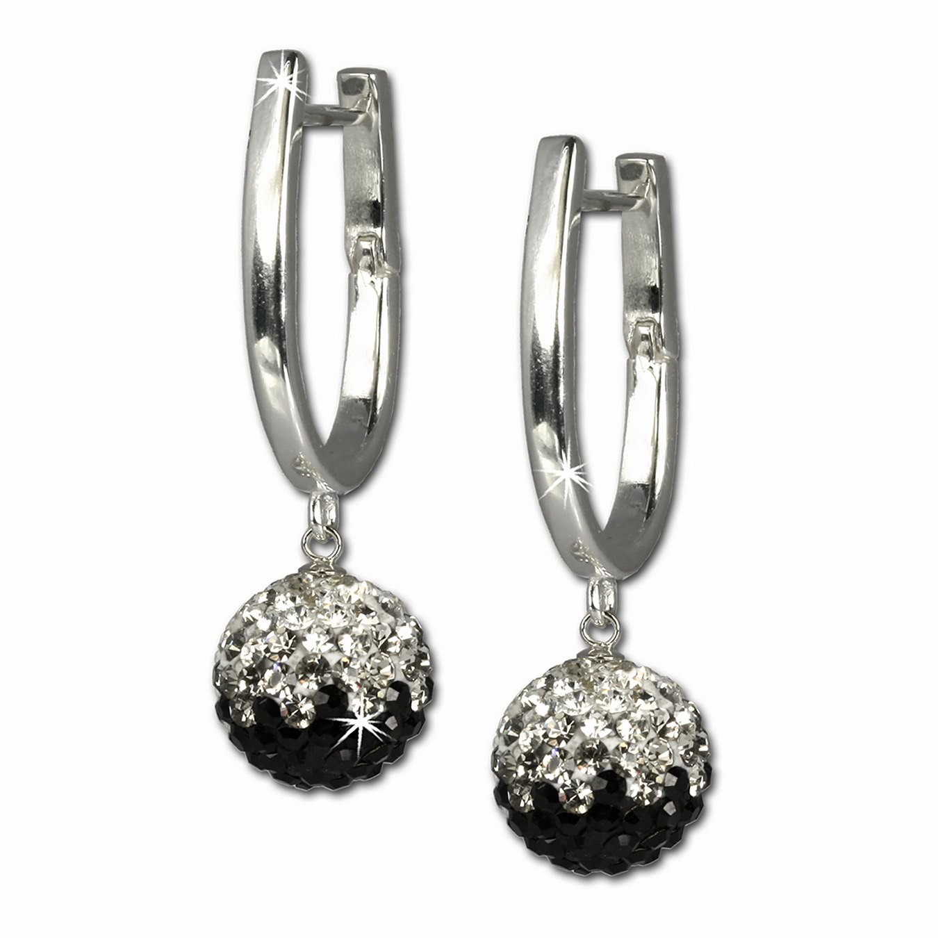 SilberDream Creolen schwarz weiß Zirkonia 925 Silber Ohrringe GSO011S