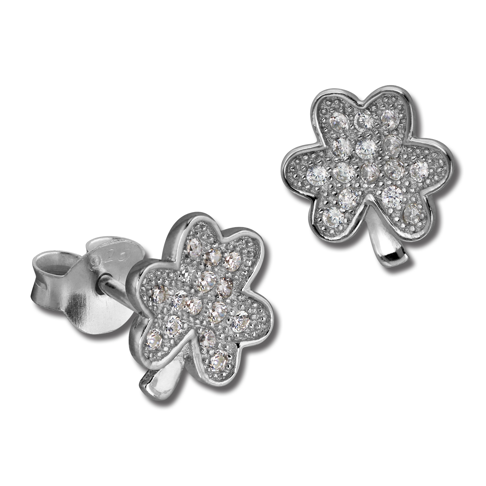 SilberDream Damen Ohrstecker weiß Shamrock Zirkonia 925 Silber Ohrringe GSO2901J