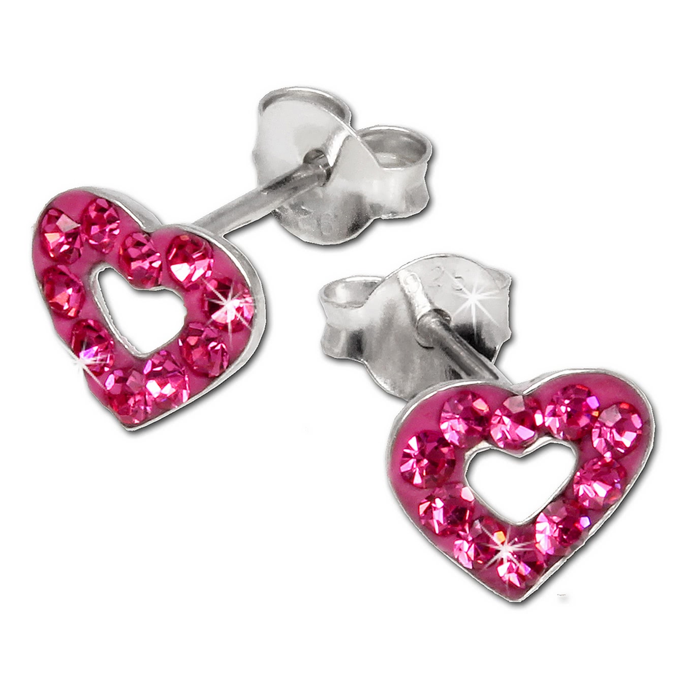 SilberDream Ohrstecker pink Herz offen Zirkonia 925 Silber Ohrringe GSO402P