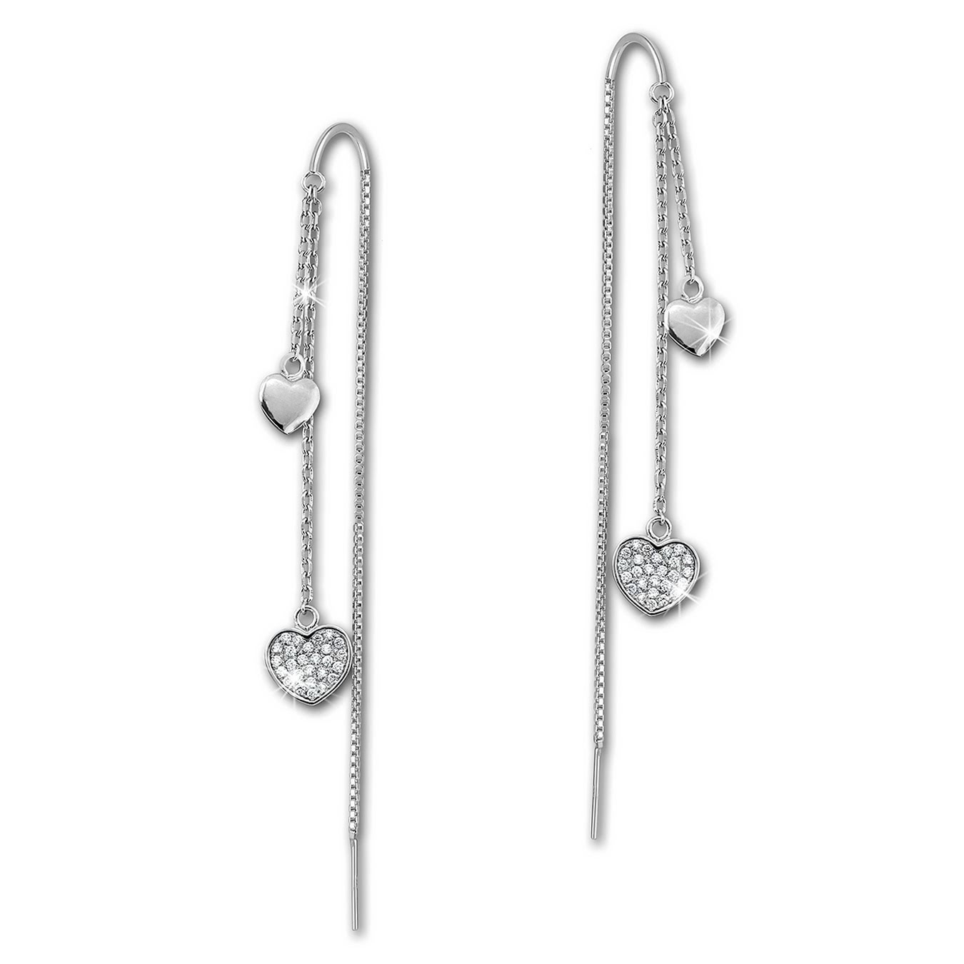 SilberDream Damen Ohrhänger weiß Herzen Zirkonia 925 Silber Ohrringe GSO439W