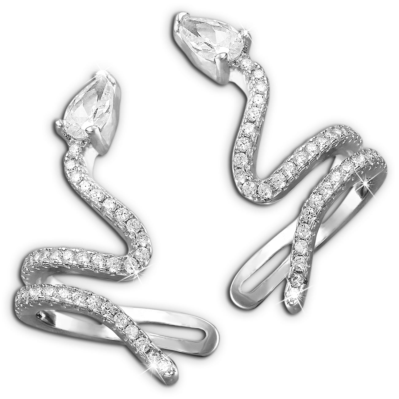 SilberDream Damen Ohrklemmen-Set weiß Schlangen Zirkonia 925 Silber Ohrringe GSO470W